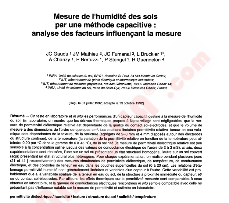 3.4. Articulo científico INRA France ; medida humedad suelo con sonda capacitiva, 1993.